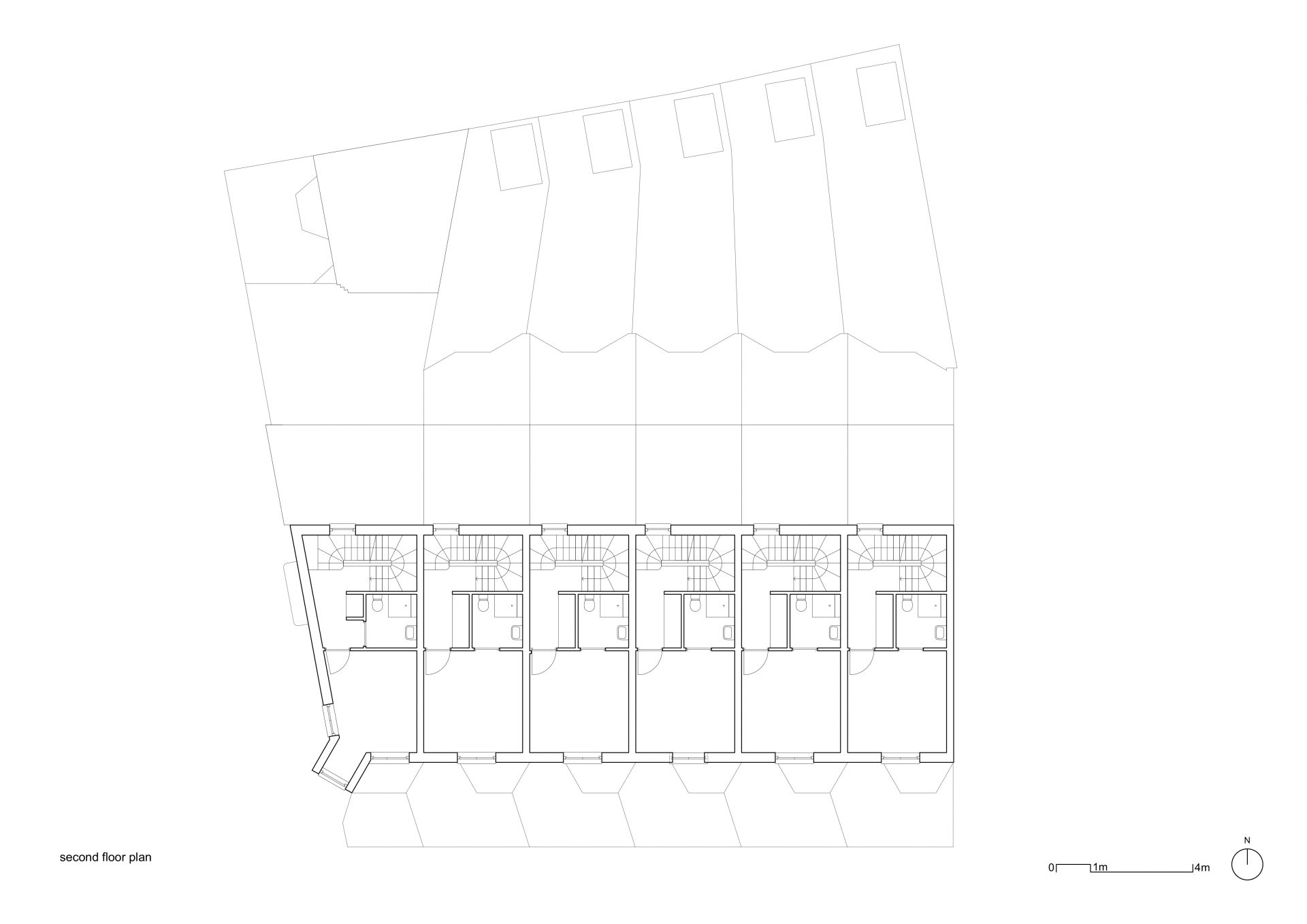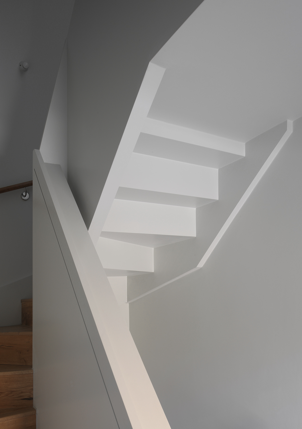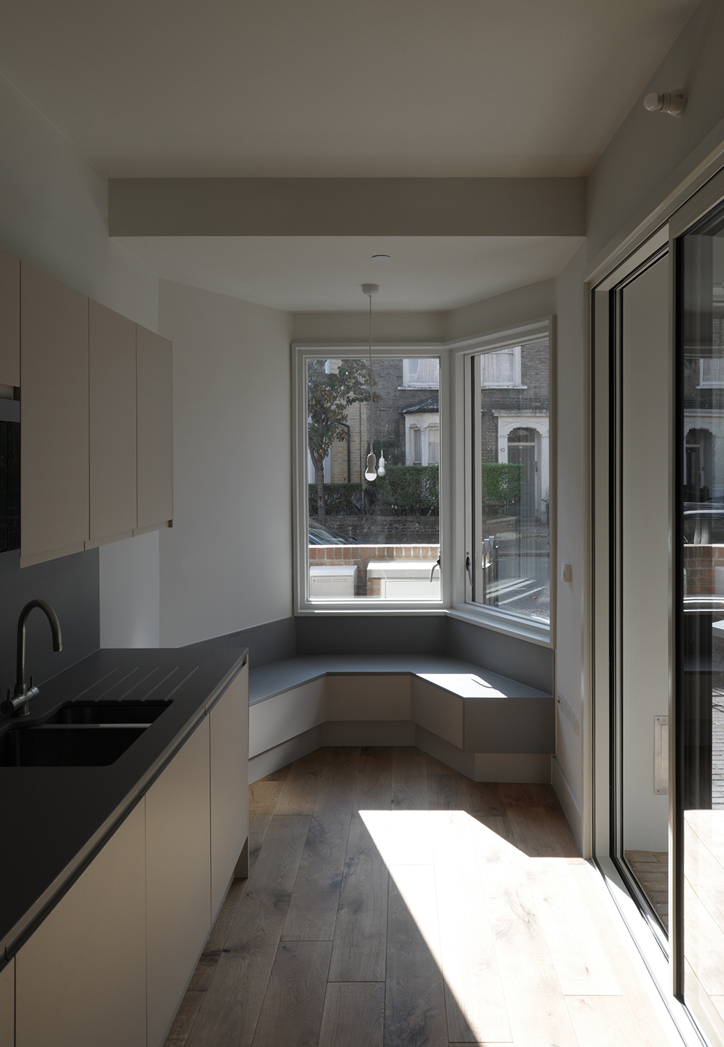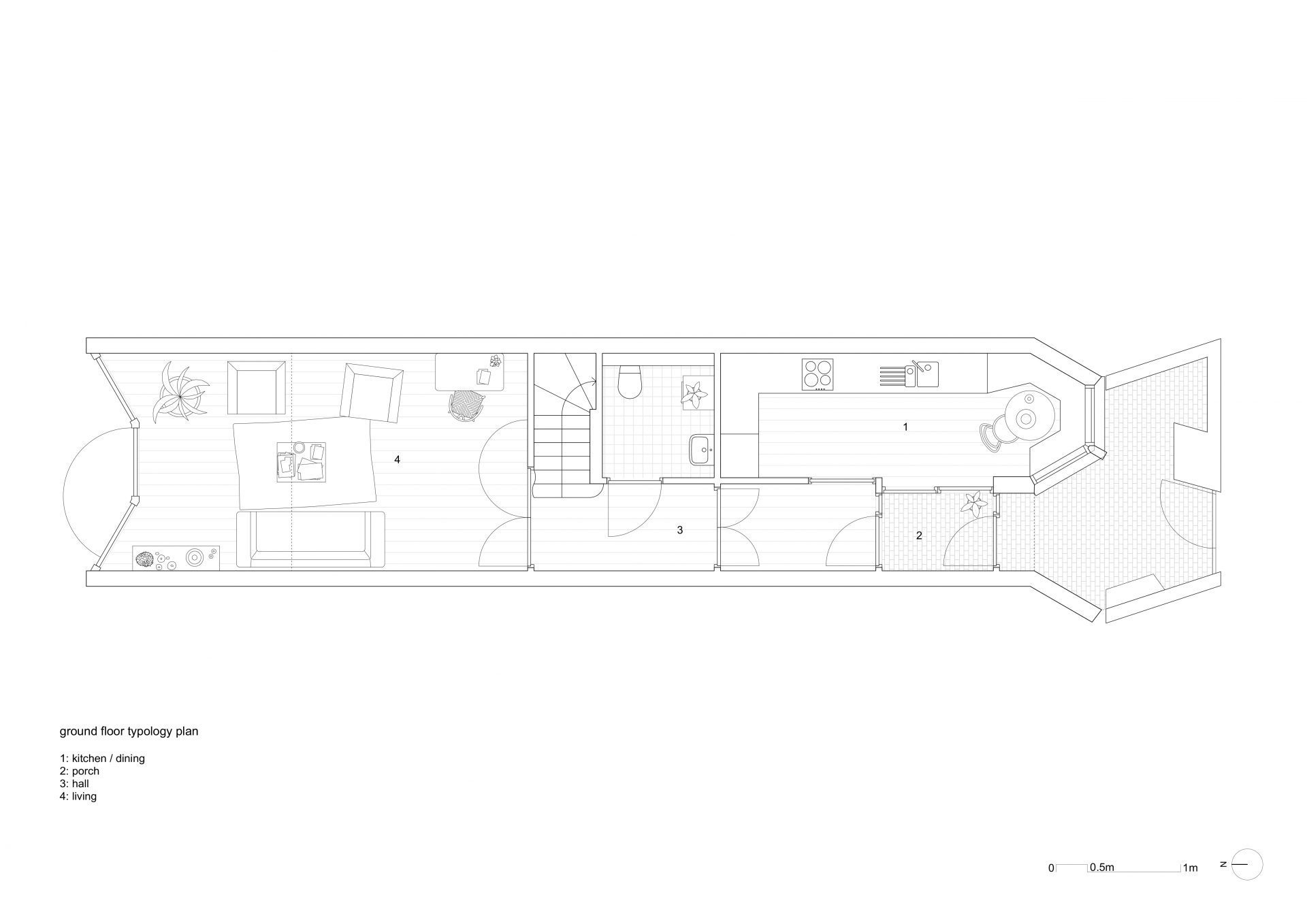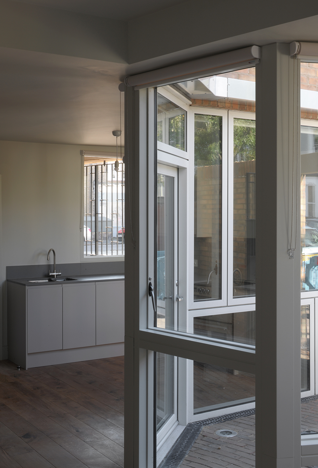 Les détails et la juxtaposition des matériaux contribuent à abstraire l’image de la maison en bande, la baie et le porche acquièrent une nouvelle image inédite par l’emploi une tuile vernissée marron et une brique d’argile rouge. Le choix des matériaux permet d’ intensifier l’expérience d’habitation du seuil. Il s’agit d’un lieu particulier et généreux, à la fois robuste et urbain. L’image du bâtiment est caractérisée par ses relations urbaines. L’avant, le côté et l’arrière ont des rôles et des expressions architecturales différents. Ensemble, ils créent un bâtiment d’une richesse agréable et respectueux de son contexte particulier, tout en ayant un caractère fort qui lui est propre.