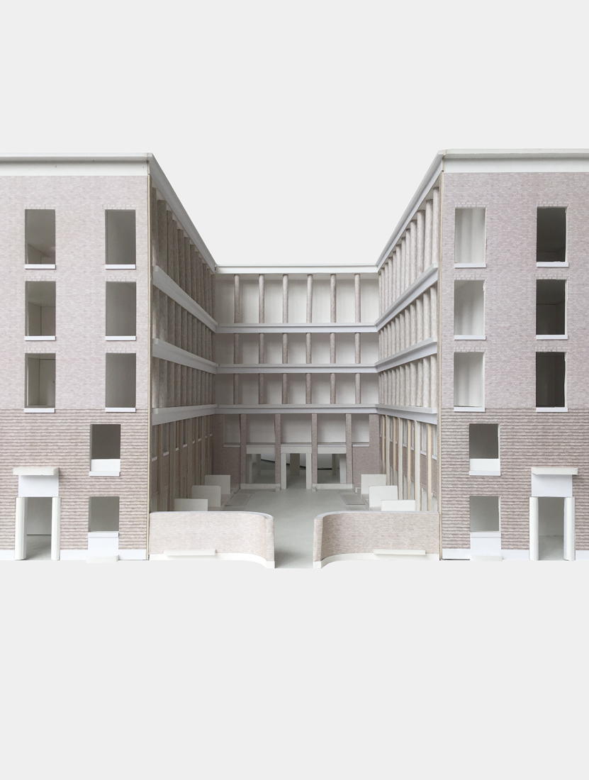 Une attention particulière a été accordée au développement d’un langage architectural nuancé pour le bâtiment, en explorant le potentiel expressif d’une palette complémentaire d’éléments en brique et en béton. Des baies vitrées animent l’élévation ouest, offrant des vues vers le sud tout en créant un rythme distinctif dans la rue. Les baies sont articulées par de fines colonnes en béton et des éléments métalliques décoratifs.