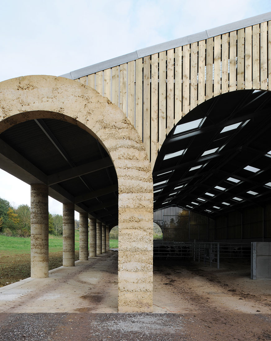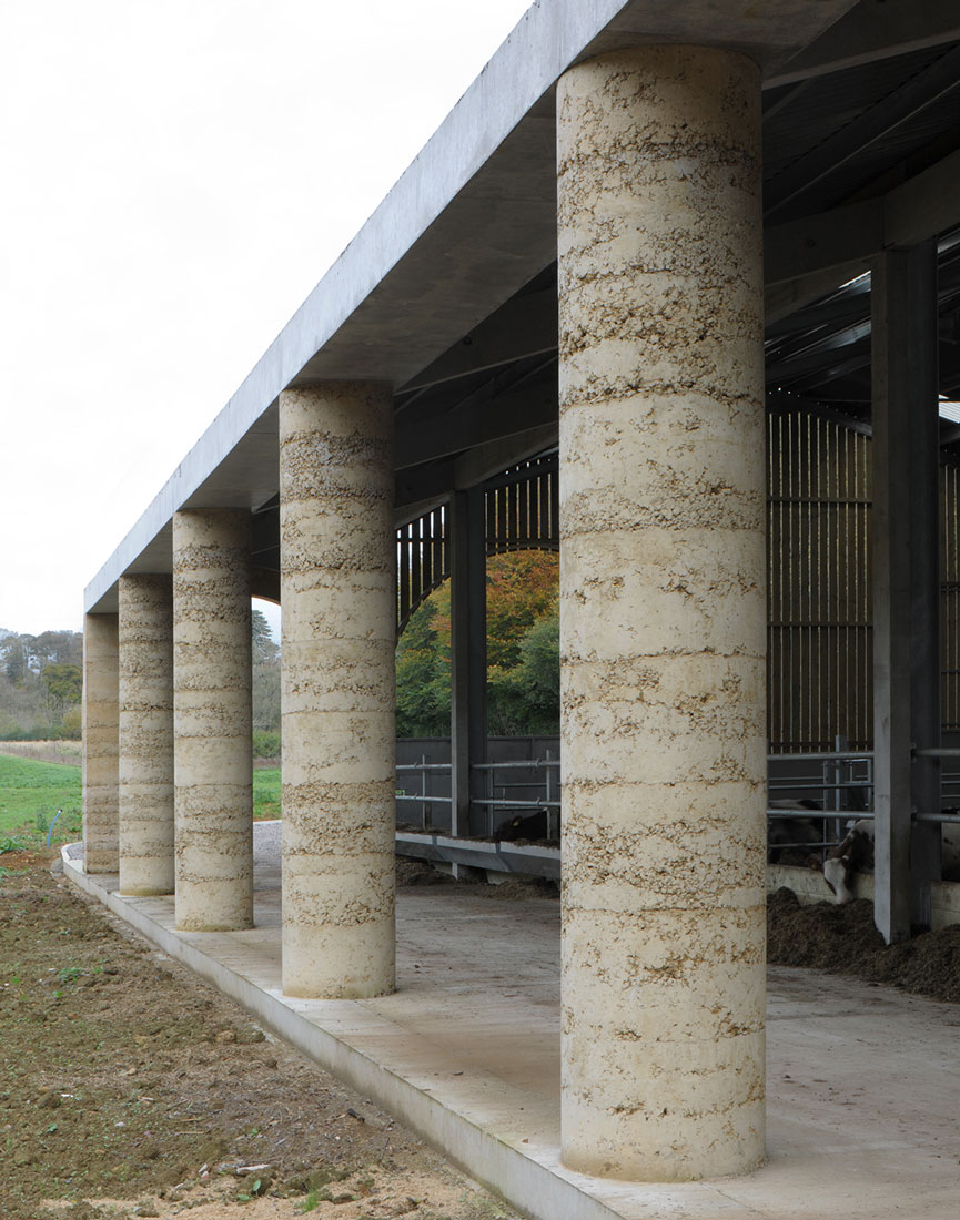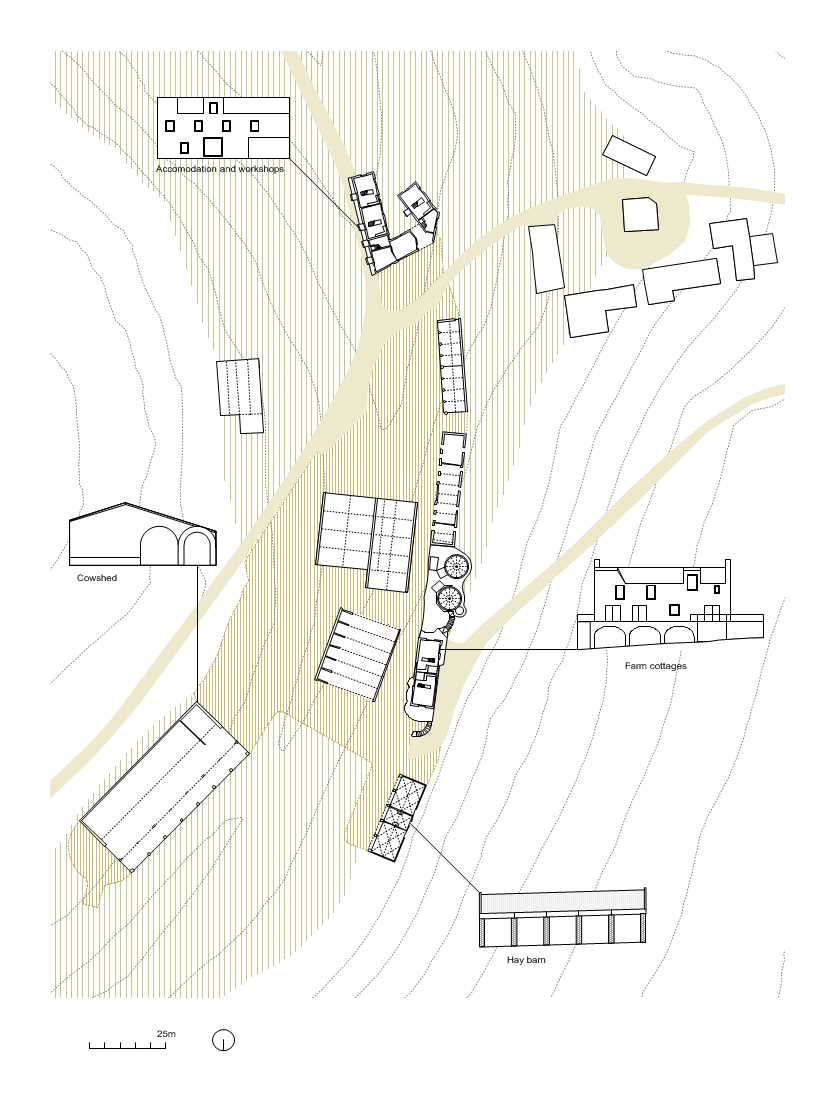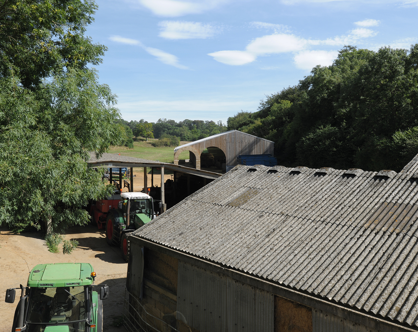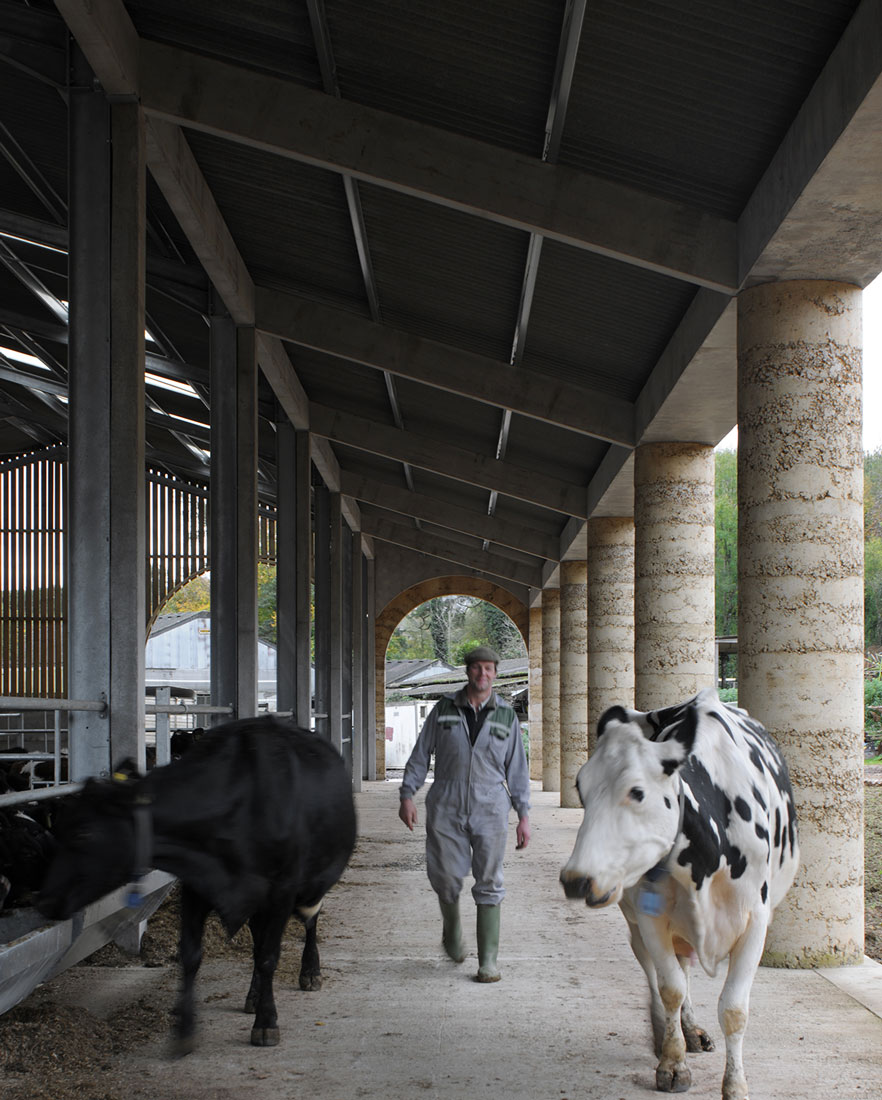 La limite nord de la ferme a été complétée par deux bâtiments agricoles à colonnades, une nouvelle étable et sa grange à foin associée. . L’étable est le plus grand bâtiment du groupe, capable d’accueillir 50 vaches. Elle est positionnée avec sa ligne d’alimentation couverte formant un stoa ouvert faisant partie d’un itinéraire de promenade à travers la vallée, depuis le domaine voisin de Hadspen jusqu’à la ferme. Les deux nouveaux bâtiments se font face de l’autre côté de l’embouchure de la vallée pour encadrer l’entrée dans le complexe construit depuis la campagne ouverte au-delà.