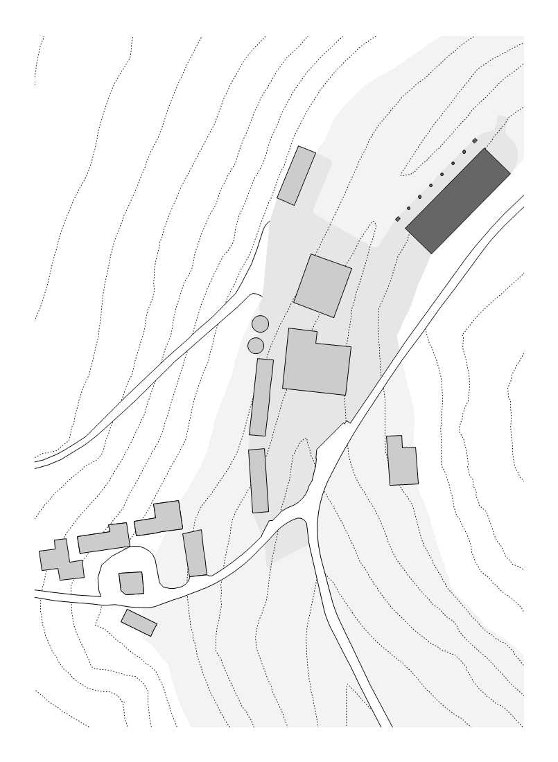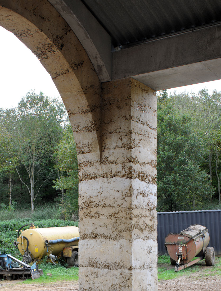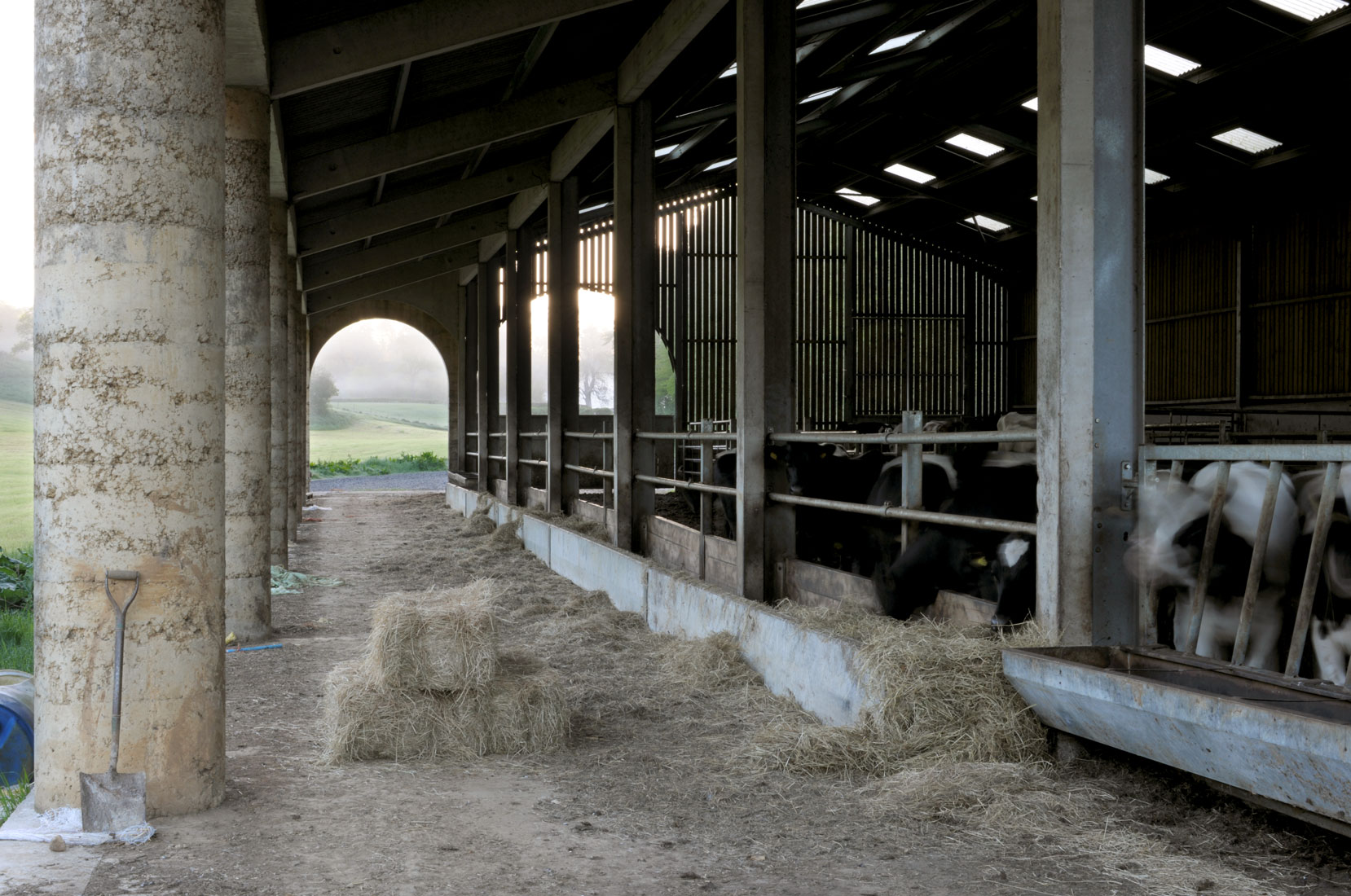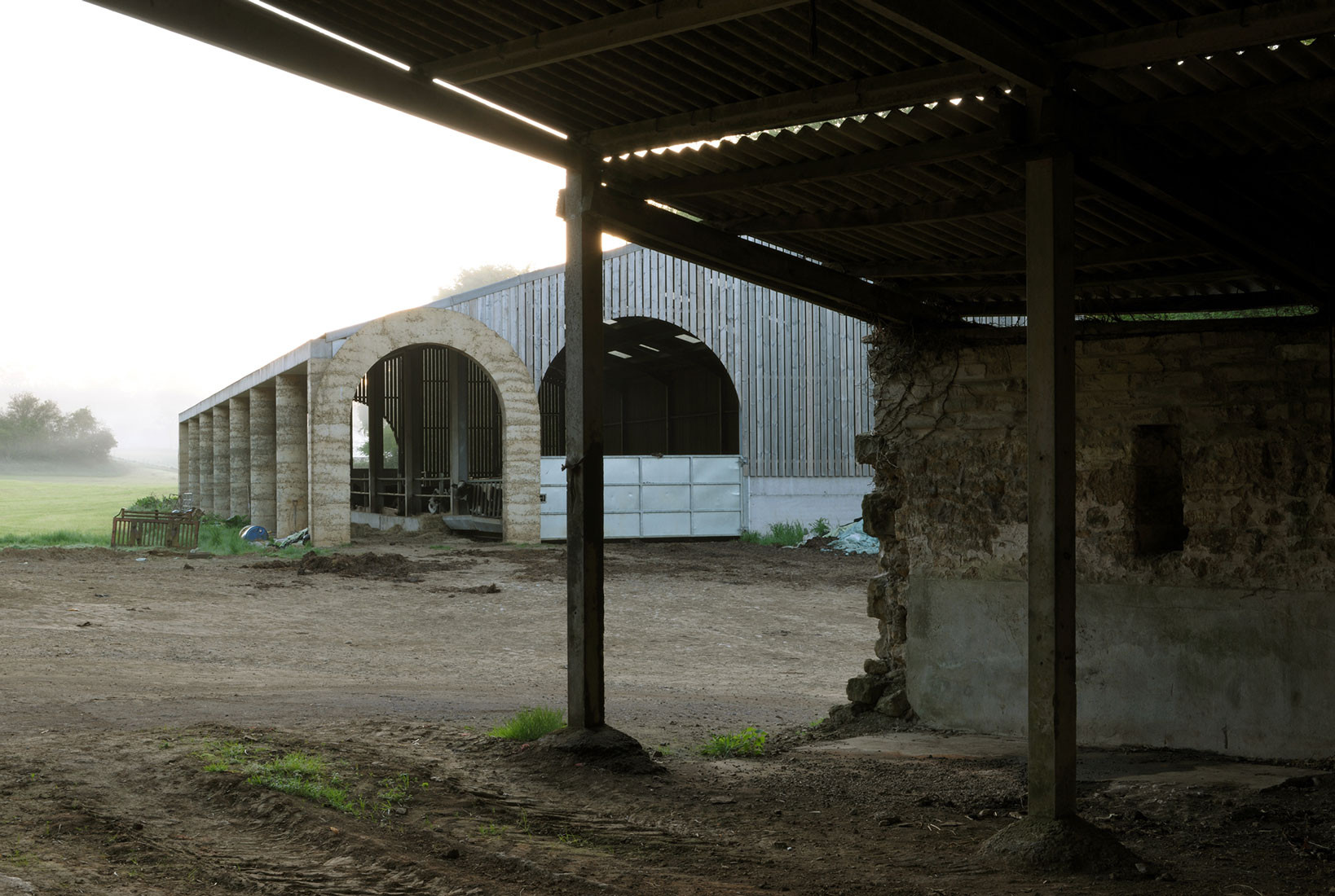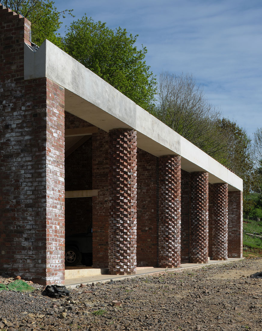 La limite nord de la ferme a été complétée par deux bâtiments agricoles à colonnades, une nouvelle étable et sa grange à foin associée. . L’étable est le plus grand bâtiment du groupe, capable d’accueillir 50 vaches. Elle est positionnée avec sa ligne d’alimentation couverte formant un stoa ouvert faisant partie d’un itinéraire de promenade à travers la vallée, depuis le domaine voisin de Hadspen jusqu’à la ferme. Les deux nouveaux bâtiments se font face de l’autre côté de l’embouchure de la vallée pour encadrer l’entrée dans le complexe construit depuis la campagne ouverte au-delà.