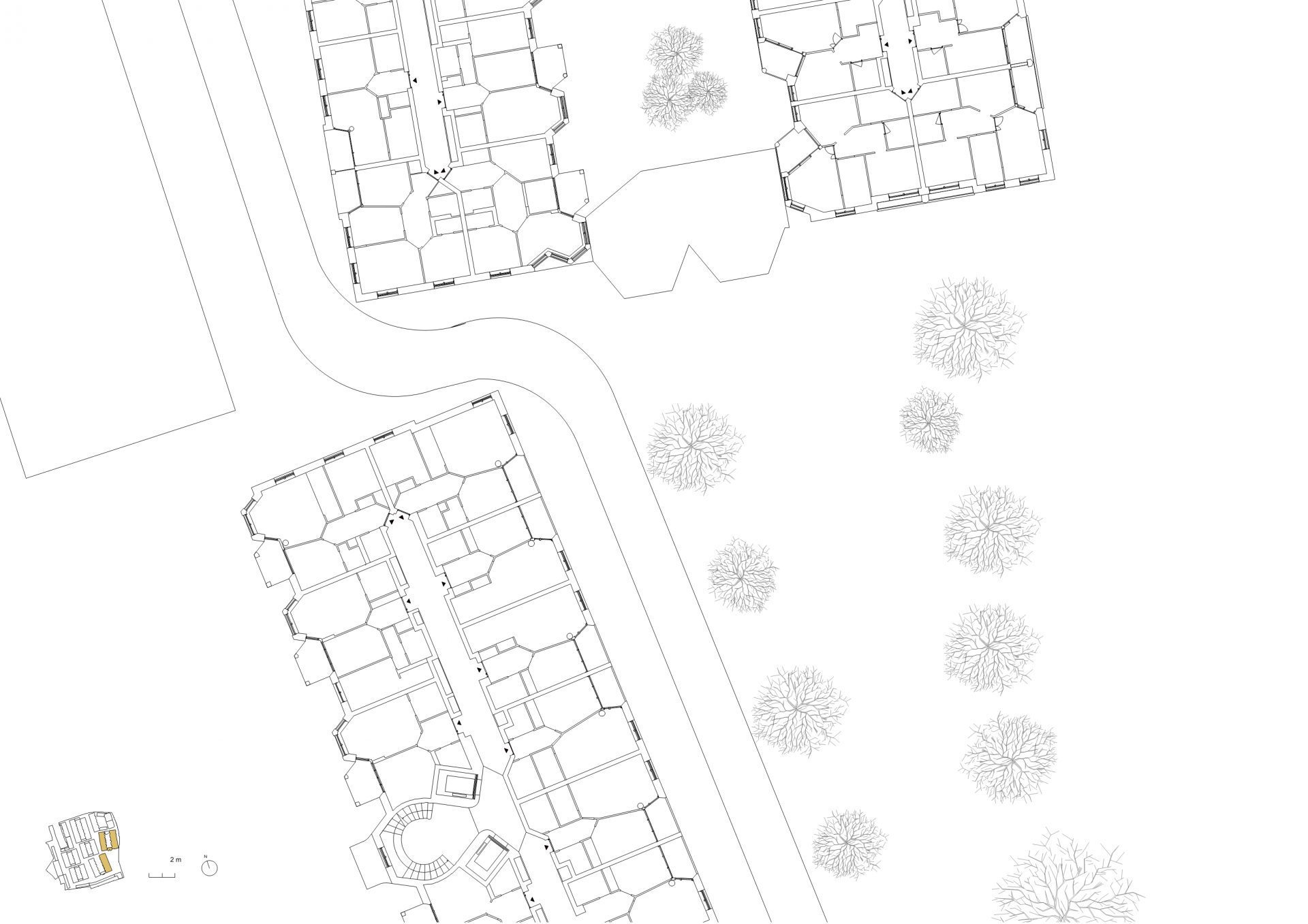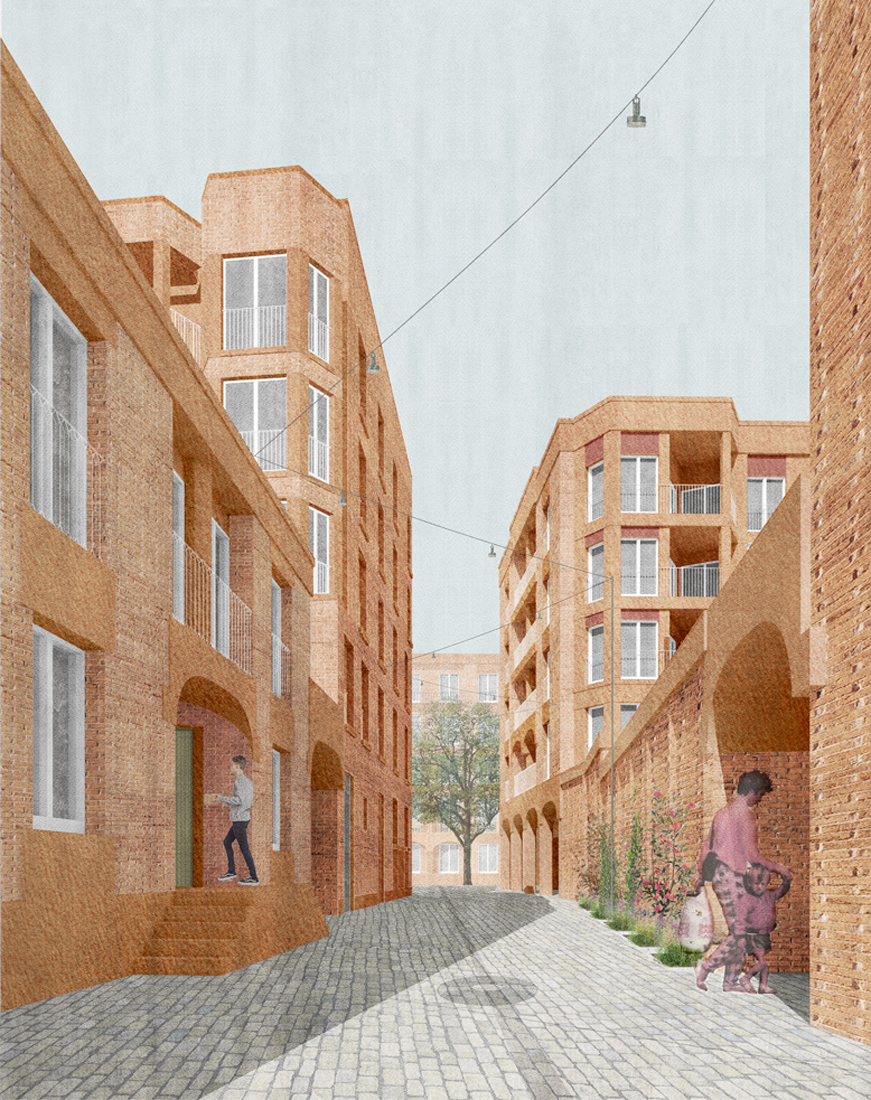 Notre approche a consistué à maintenir la clarté et à créer un nouveau quartier urbain qui soit distinct. C’est un lieu qui peut être clairement identifié et compris comme un quartier. Cet objectif est atteint en développant une cohérence dans la matérialité, dans le type de bâtiment et dans l’échelle intime des rues donnant au quartier son caractère. Ce sont surtout les rues et ruelles intimes qui donnent au quartier son caractère.