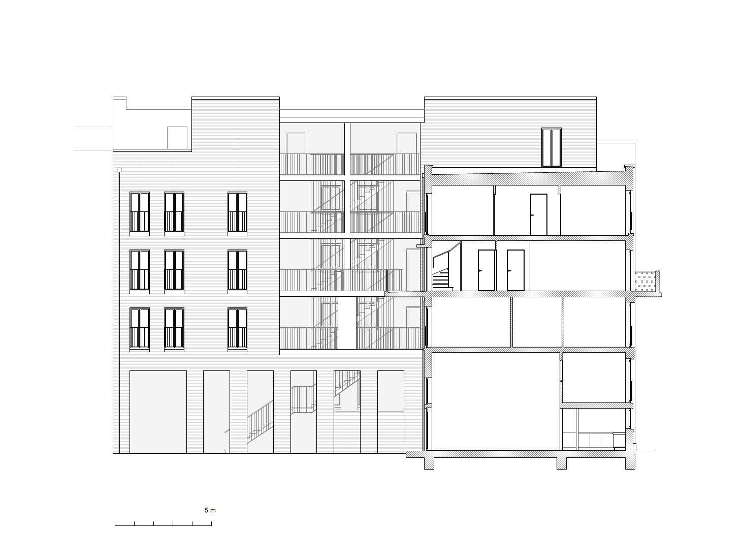 Il s’agit d’un nouveau bâtiment résidentiel sur cinq niveaux qui comprend un mélange de 27 appartements en triplex, duplex et sur un seul niveau. Il a été commandé en 2015 par l’association de logement Woonhaven Antwerpen suite à un concours remporté en 2014 en collaboration avec Happel Cornelisse Verhoeven.