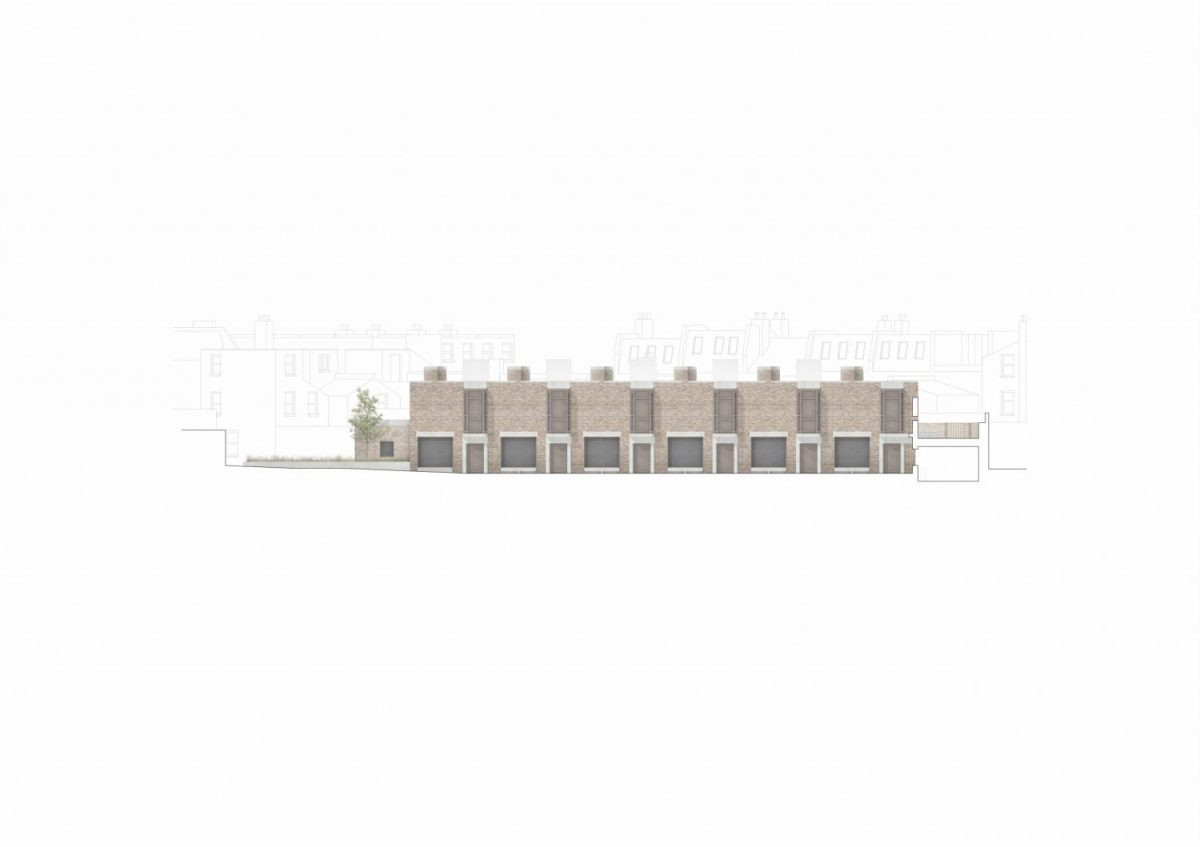 Located at the centre of an urban island in London Borough of Hammersmith and Fulham this project revitalises a forgotten backland site, sensitively placing a family of six houses along a new mews street.